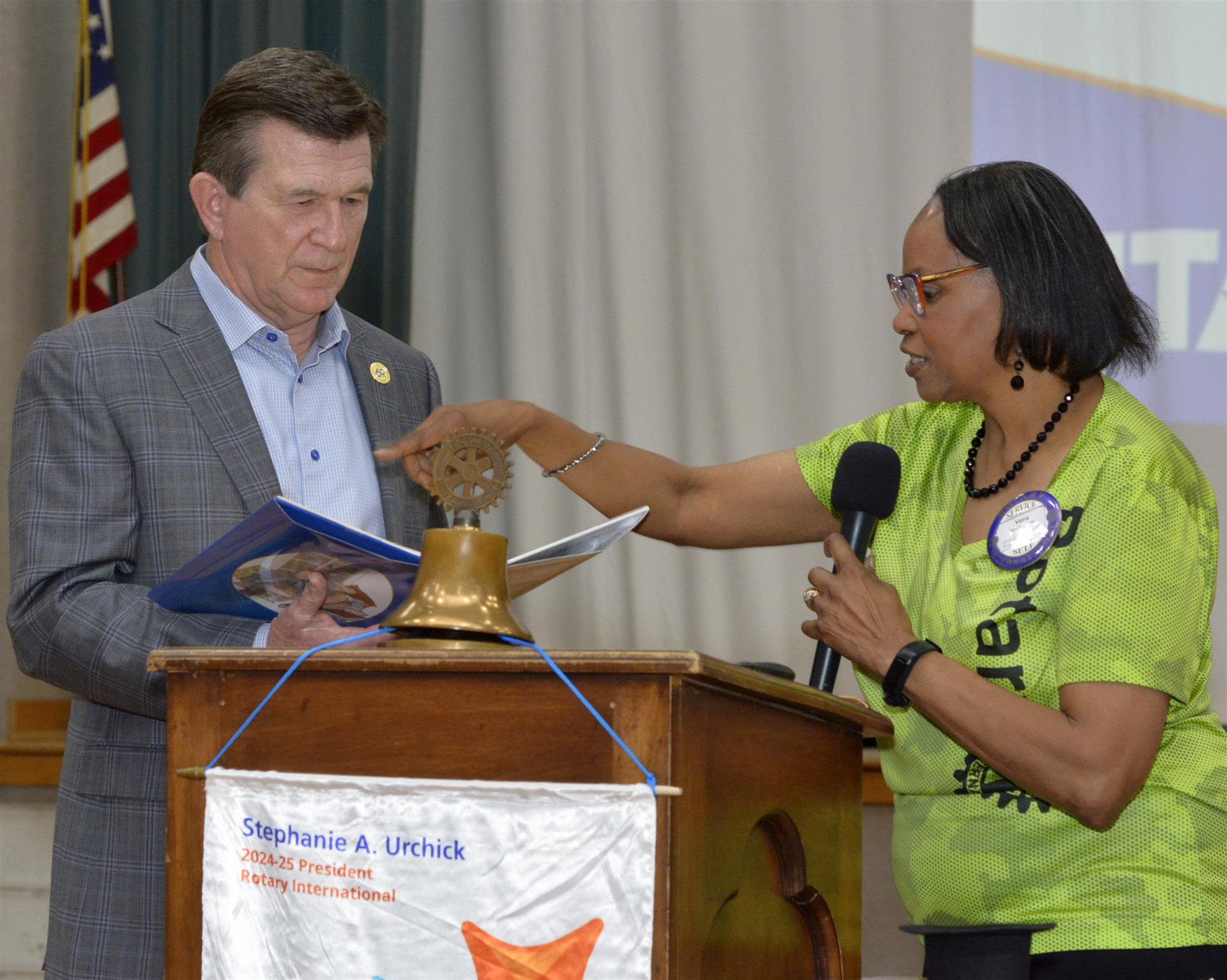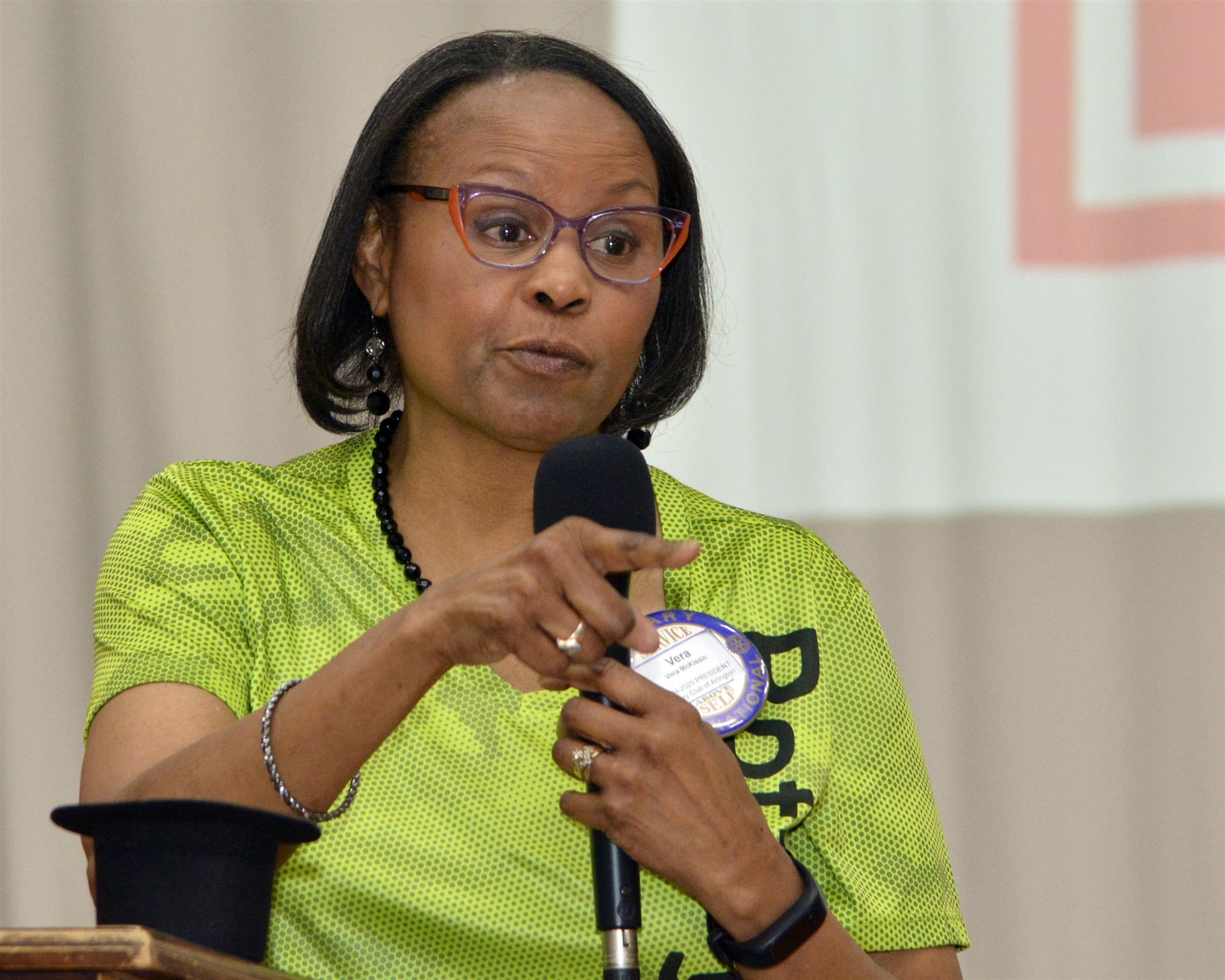 The weekly meeting of the Rotary Club of Arlington, Texas was called to order at 12:00 p.m. by President Vera McKissic. Jason Kazarian offered the invocation and led the Pledge of Allegiance. Everyone sang a beautiful rendition of “God Bless America”. Our greeter, Barry Bondurant, introduced guests and visiting Rotarians. President Vera reminded us to report volunteer hours and to sign up to lead the prayer and pledge and to be a greeter.
