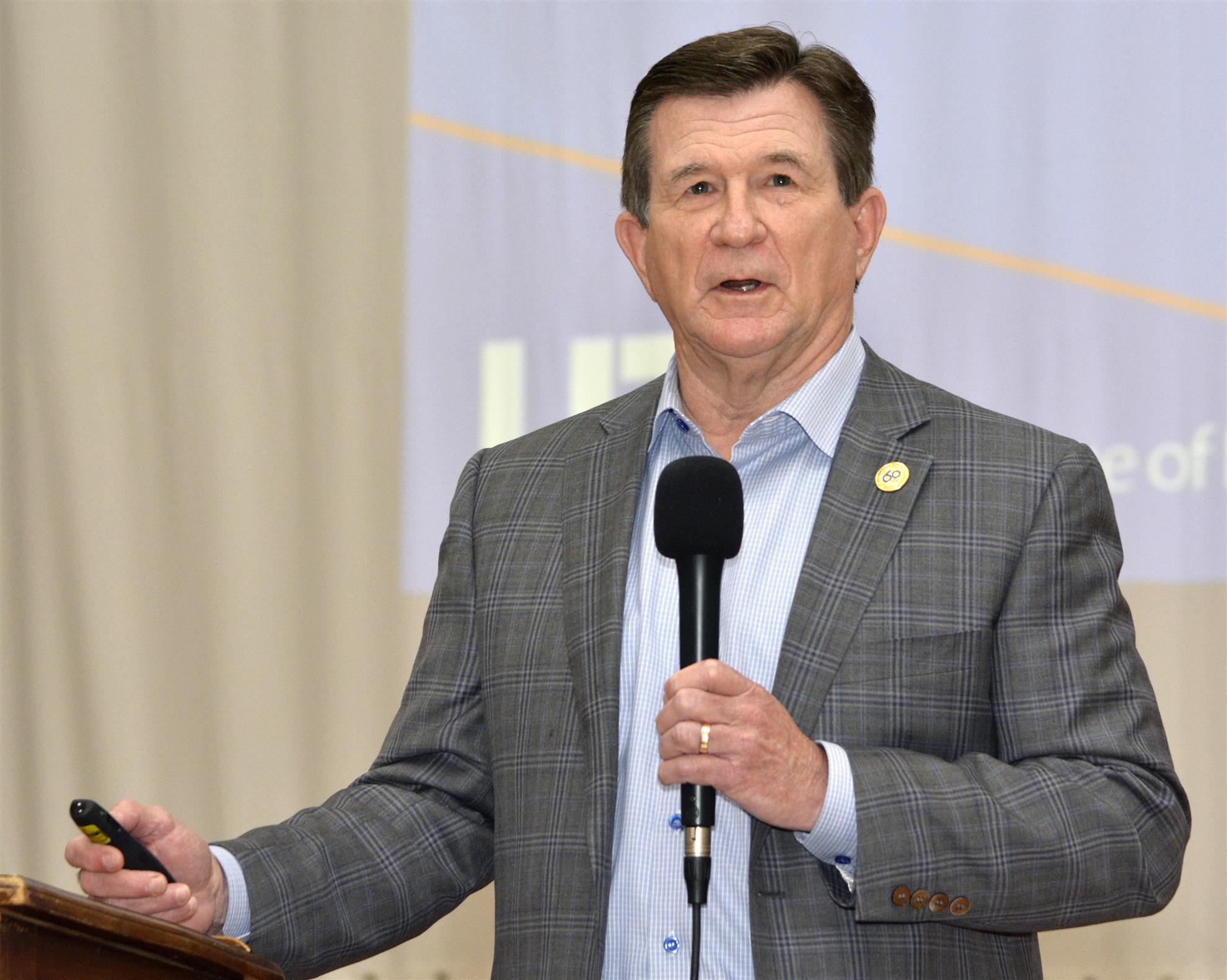 Randy Hendricks introduced Harry Dombroski, Dean of UTA’s College of Business, who presented the day’s program. Dean Dombroski (Dean D) is a graduate of UTA with a BBA and a CPA. He was a senior officer with Hunt Consolidated, Inc., one of the largest privately held companies in America. His business experience led to many new initiatives at UTA: Dean’s Leadership Circle, Mavs100, The Business Maverick (College of Business magazine), Sam Mahrouq Financial Markets Lab, and the Access and Achievement initiative in the College. Dean D brings unparalleled business acumen and business expertise to the UTA College of Business, celebrating its 60th anniversary this year.