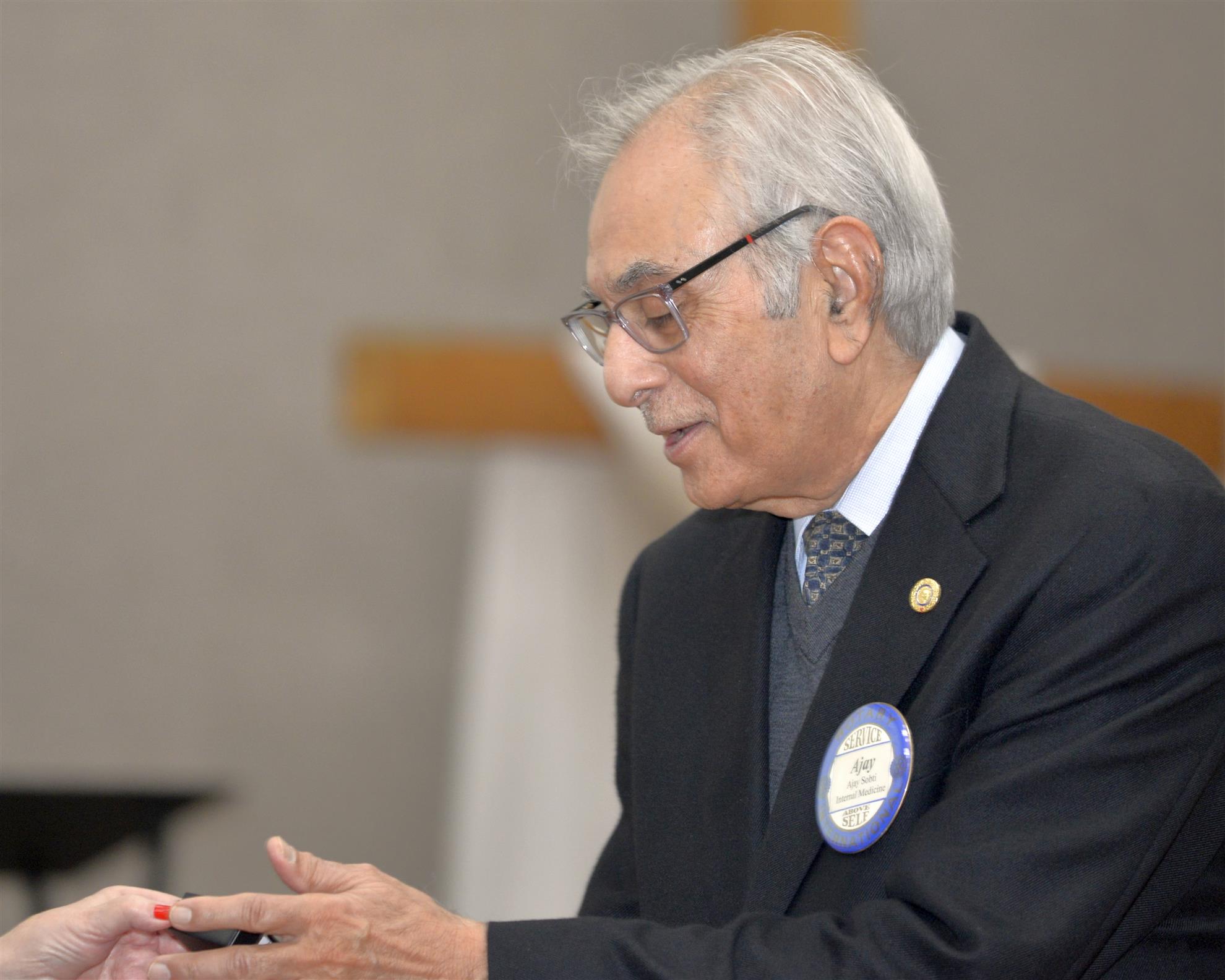 Sally Hopper congratulated and presented Dr. Ajay Sobti with his earned Paul Harris Fellow +8 in recognition of his outstanding support as a donor of the Rotary Foundation.
