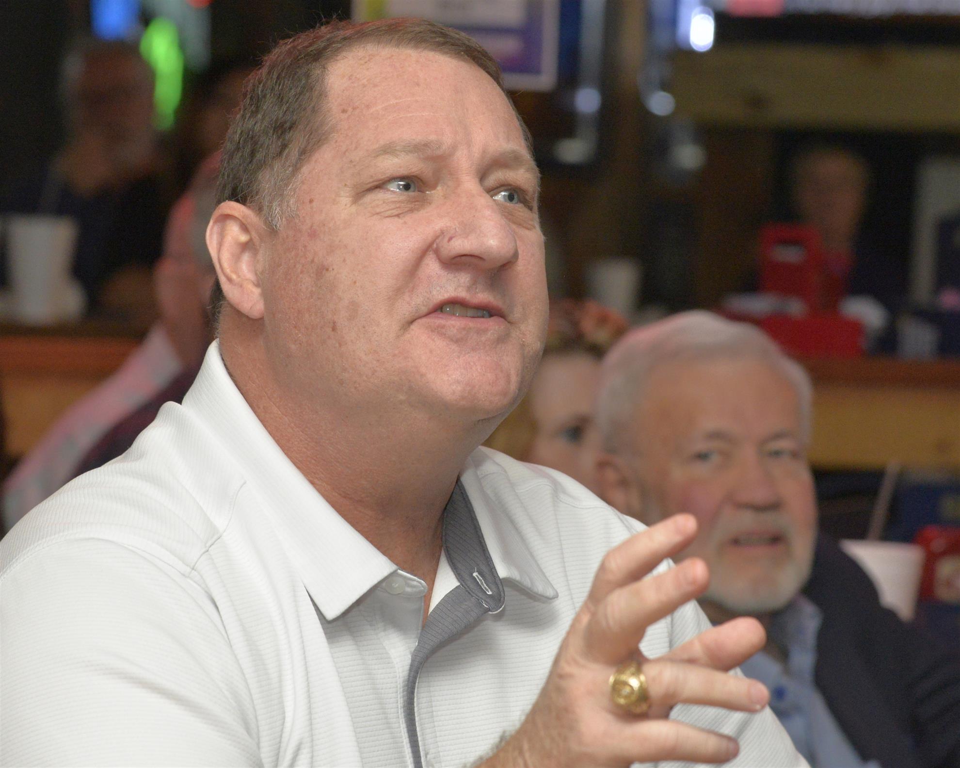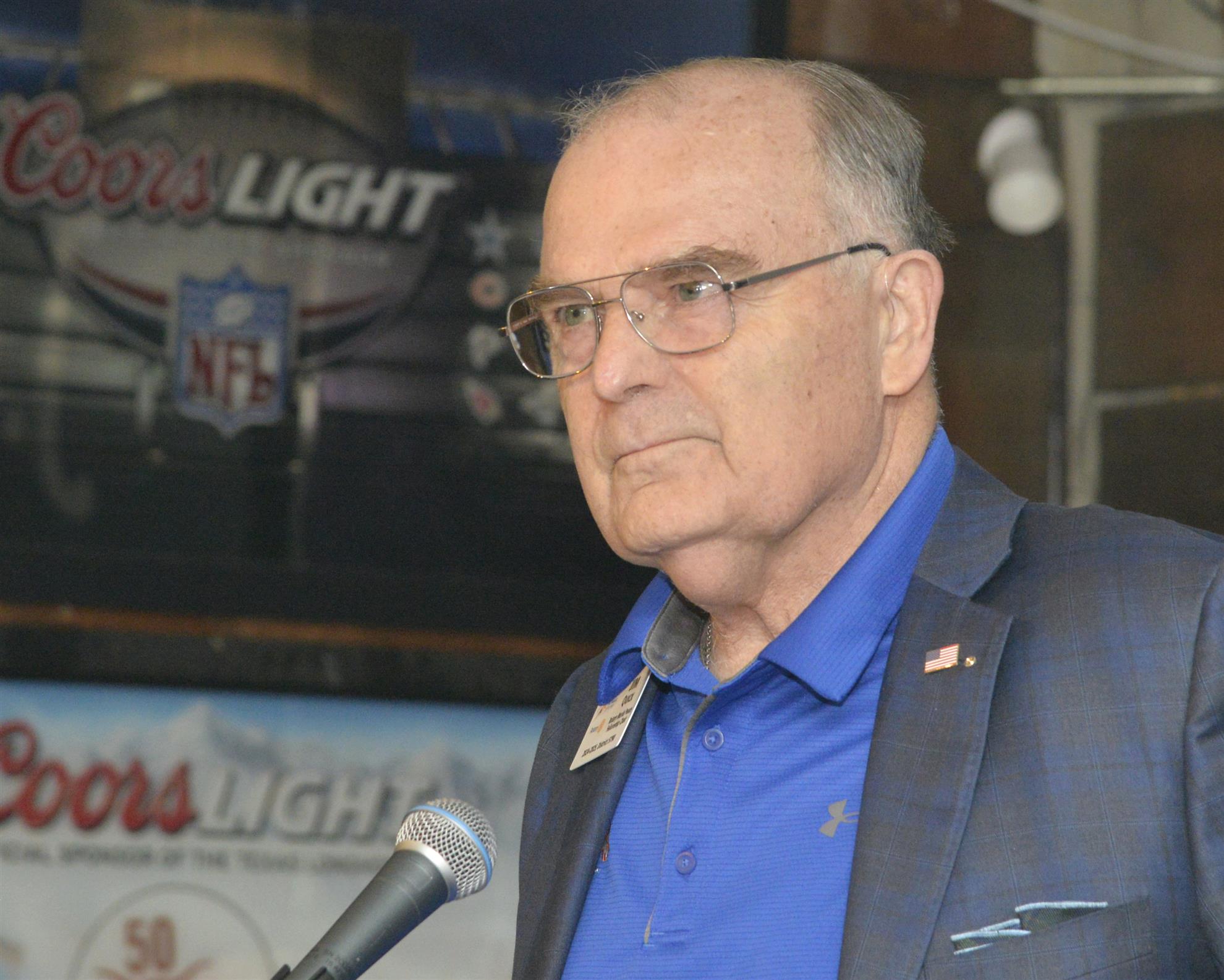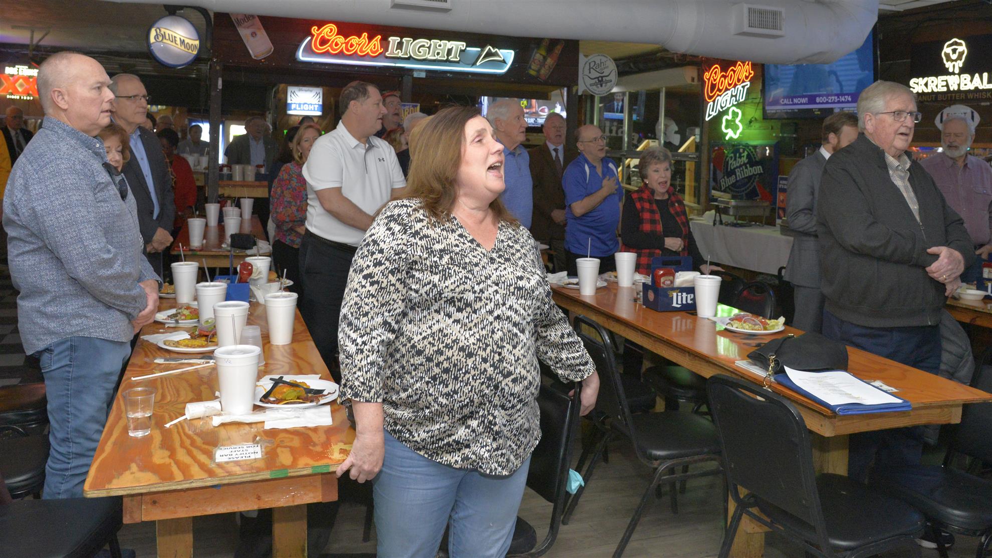 Jim Quick gave the prayer and led us in the Pledge. Given we were at J. Gilligan’s and didn’t have a piano, Donna Mack started singing God Bless America for us.
