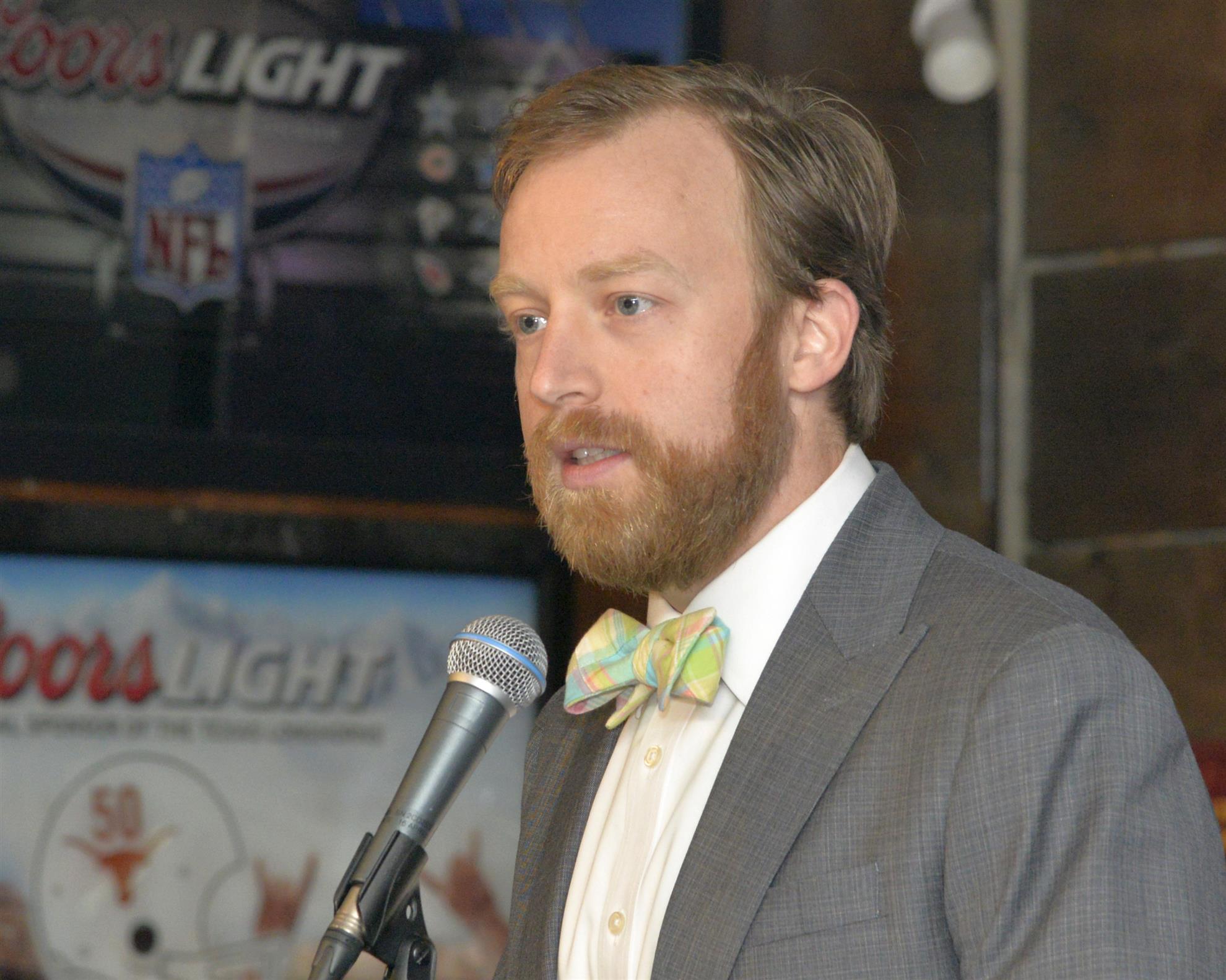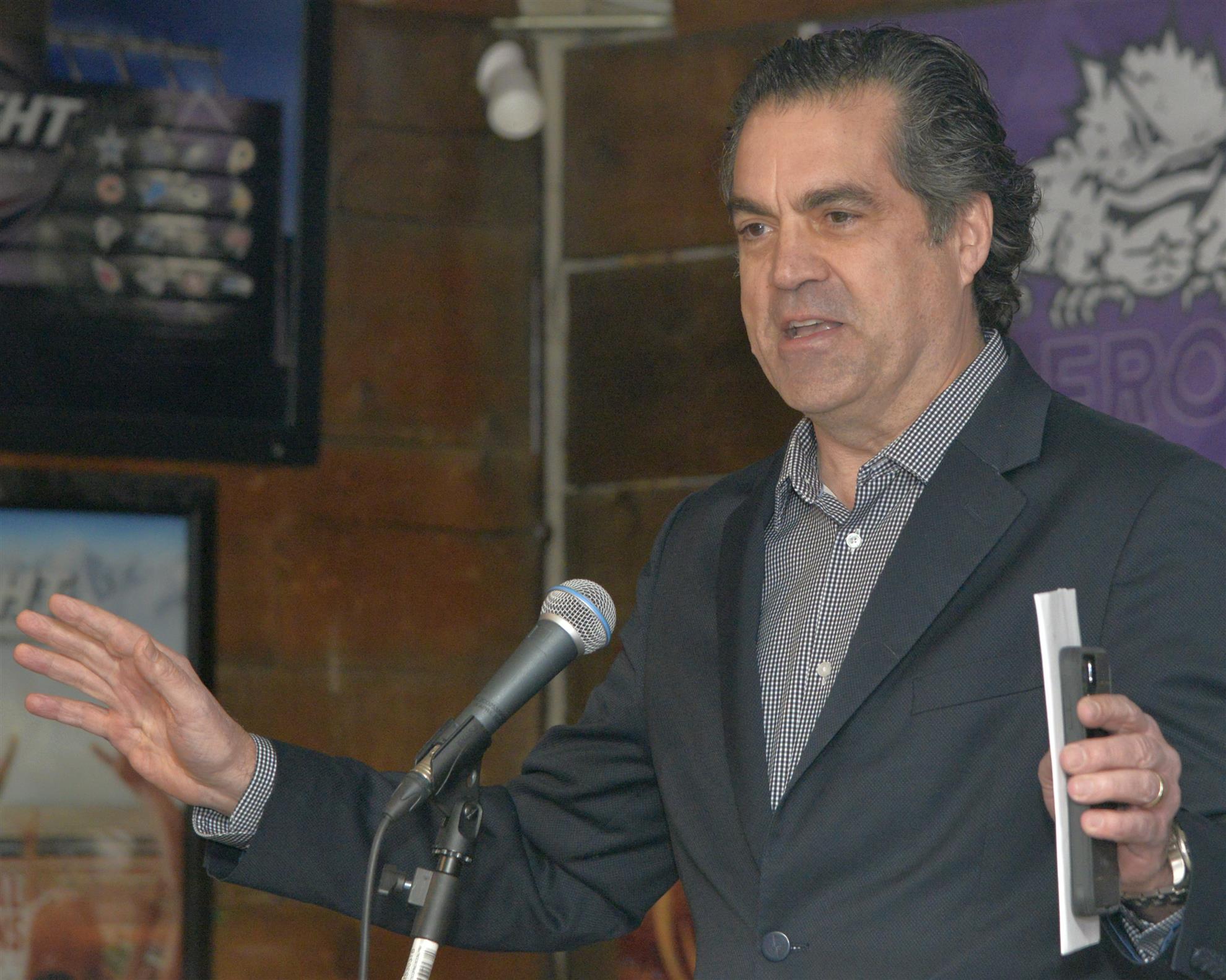 President Elect Randy Hendricks introduced our guest speaker, Jim Watry. His resume is impressive, but what really caught me is that our guest is a master sommelier. The presentation was an update regarding Texas LIVE! This was the second time Jim had presented to us, the first time had here a few years back when he was just starting in Arlington and at Texas LIVE.